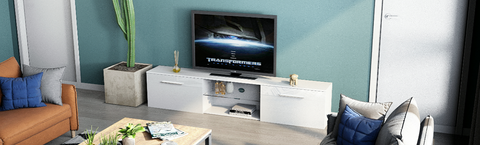 The TV stand includes a multicolored LED back light which can be switched between 16 colors. There are 4 lighting modes that can create a variety of warm and romantic atmospheres. The simple style can be arbitrarily matched with various styles of furniture while also allowing you to get rid of the messy living room.