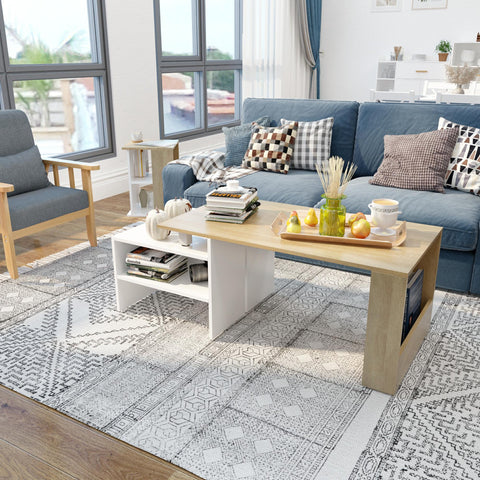 - The coffee table uses wood and white color matching, and its unique combined structure design highlights the modern and simple style. It can be perfectly combined with other decorative styles and is an ideal complement to any industrial or modern living room or office area.