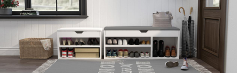 This beautiful shoe bench is like a small classic hall wardrobe, providing you with a good place to store shoes properly. You also can store not only shoes but also books, clothes, if you place the unit vertically to get a storage shelf.