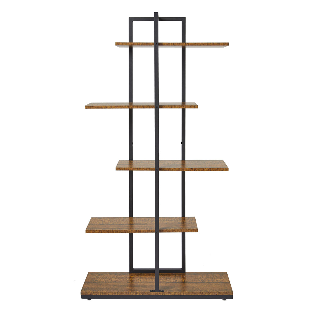 Meerveil Bookcase, Brown, 5 Tier Asymmetric Split Level Storage Shelf